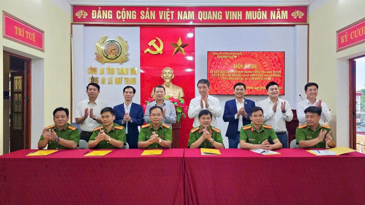 Chiều ngày 29/10/2025, tại trụ sở Công an xã Như Thanh, Công an các xã trong Cụm số 15 gồm: Như Thanh, Mậu Lâm, Yên Thọ, Xuân Thái, Thanh Kỳ và Xuân Du đã tổ chức Hội nghị ký quy chế phối hợp trong công tác giải quyết, xử lý các vấn đề liên quan đến công tác an ninh trên địa bàn.