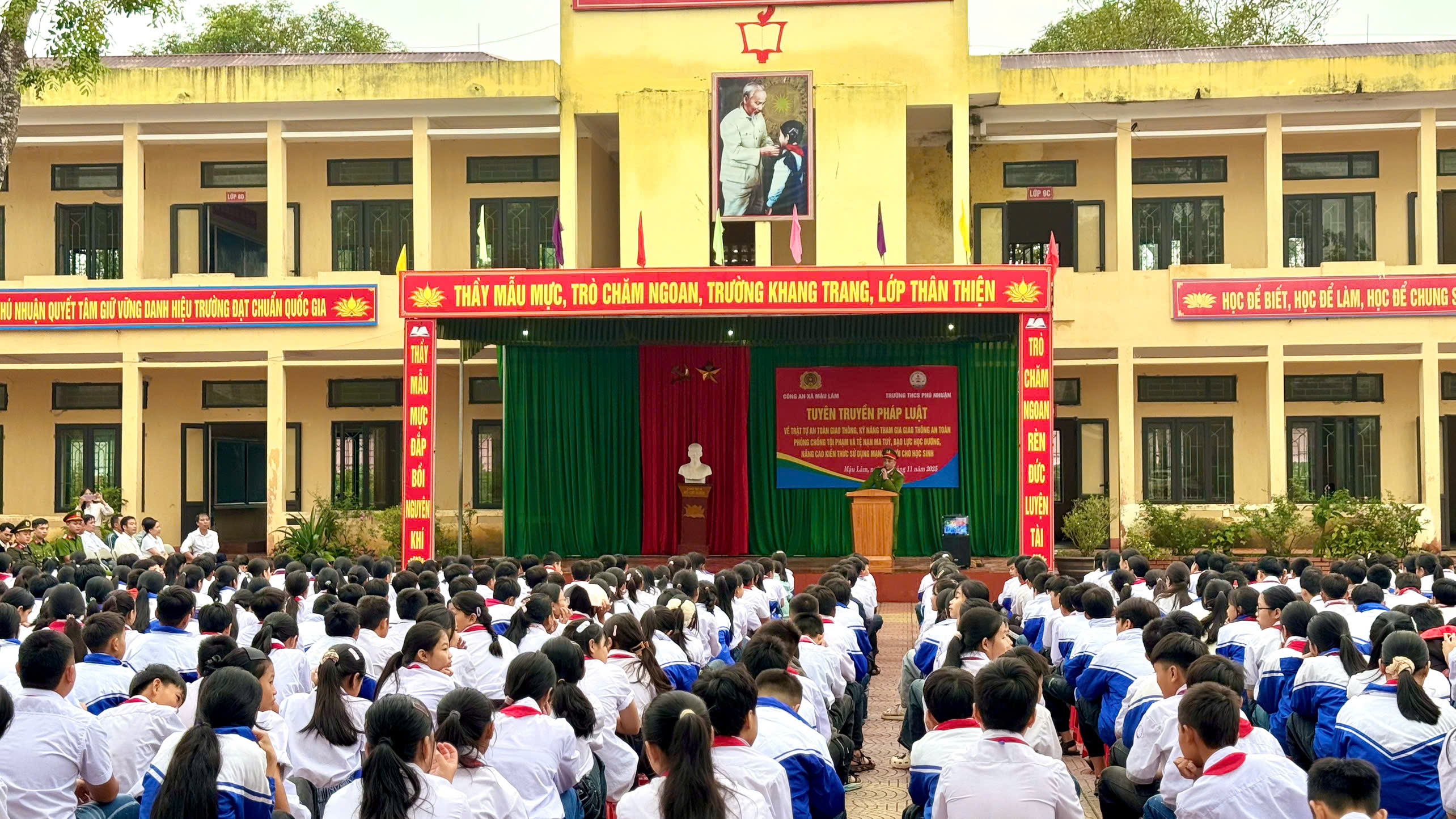 Sáng ngày 10/11/2025, Công an xã Mậu Lâm đã phối hợp với Trường Trung học cơ sở Phú Nhuận tổ chức buổi tuyên truyền, phổ biến pháp luật cho toàn thể học sinh và cán bộ, giáo viên nhà trường.