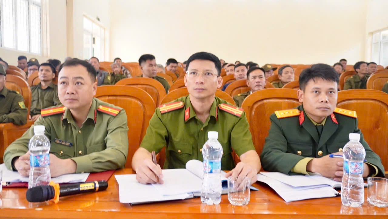Chỉ huy, cán bộ, chiến sĩ Công an xã; cán bộ các phòng nghiệp vụ Công an tỉnh Thanh Hóa tăng cường và đại diện Ban Chỉ huy Quân sự xã tham dự hội nghị.