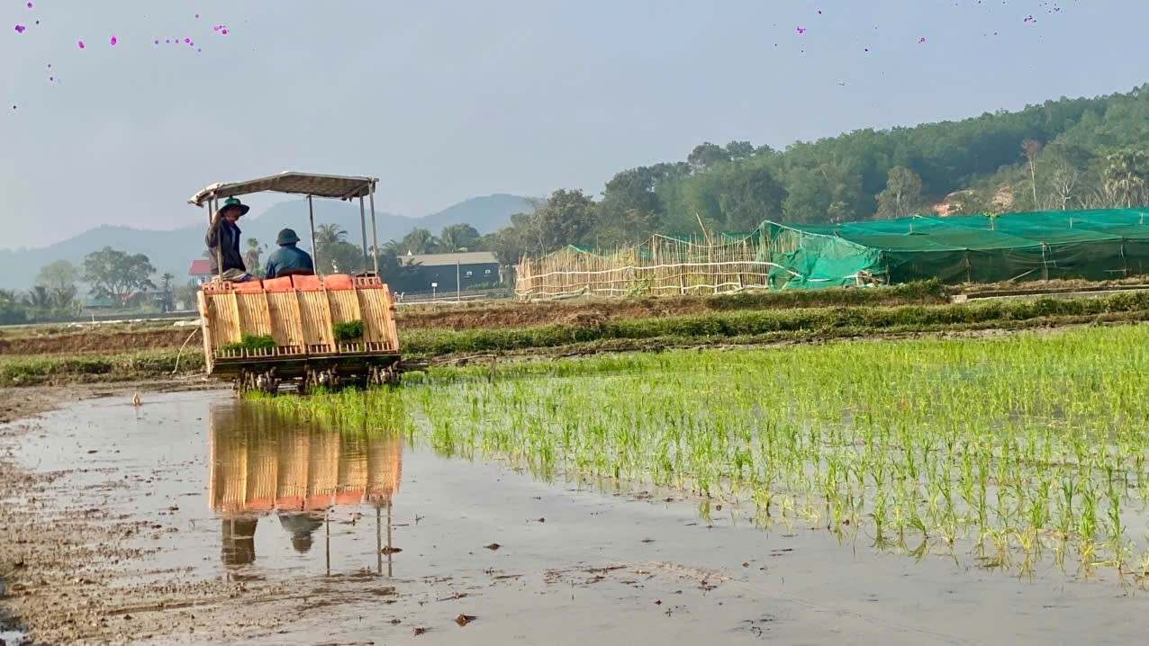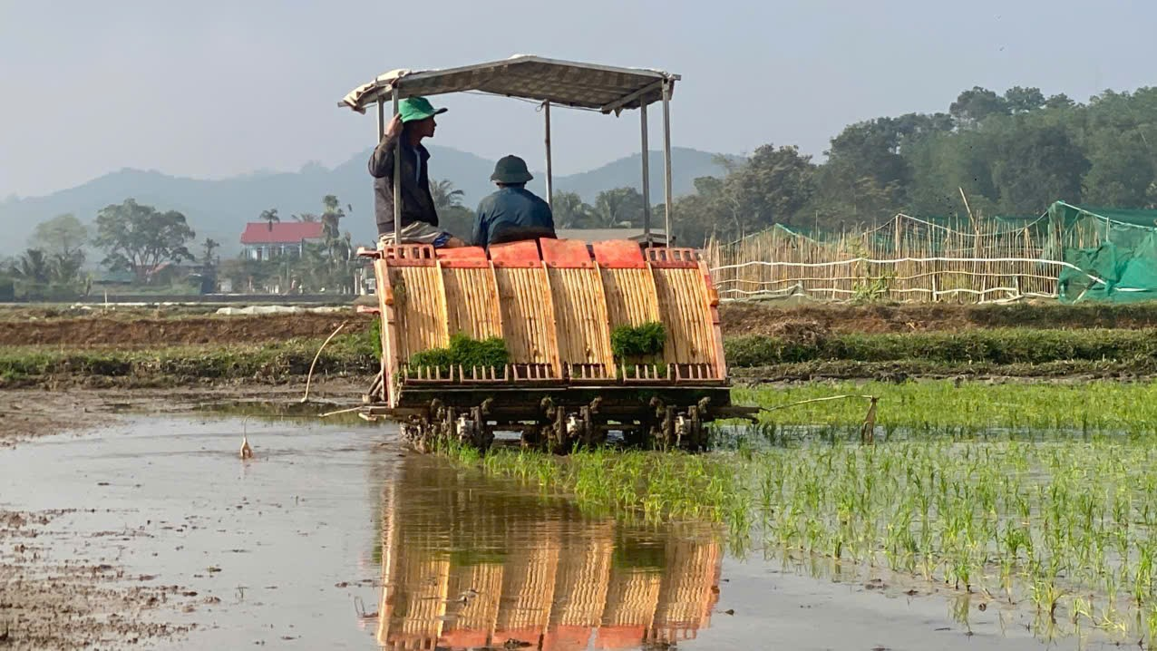 Máy cấy mạ khay được đưa vào sản xuất, góp phần đẩy nhanh tiến độ cấy lúa, nâng cao hiệu quả canh tác cho nông dân tại xã Mậu Lâm.