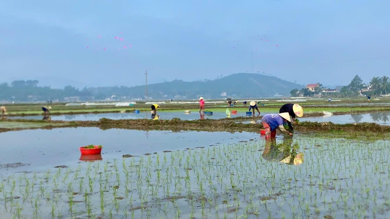 Đến thời điểm hiện tại, toàn xã đã hoàn thành làm đất trên 845,75 héc-ta; diện tích cấy đạt khoảng 793,75 héc-ta, trong đó có 400 héc-ta được cấy trước lịch nông vụ từ 5 đến 7 ngày do đặc thù tiểu khí hậu và đất đen của địa phương. Diện tích còn lại khoảng 52 héc-ta đang tiếp tục được triển khai cấy. Trong tổng diện tích đã cấy, diện tích cấy bằng máy chiếm khoảng 1/3, còn lại là cấy thủ công. Tiến độ cấy lúa cơ bản bảo đảm theo kế hoạch và đúng khung thời vụ đề ra.
