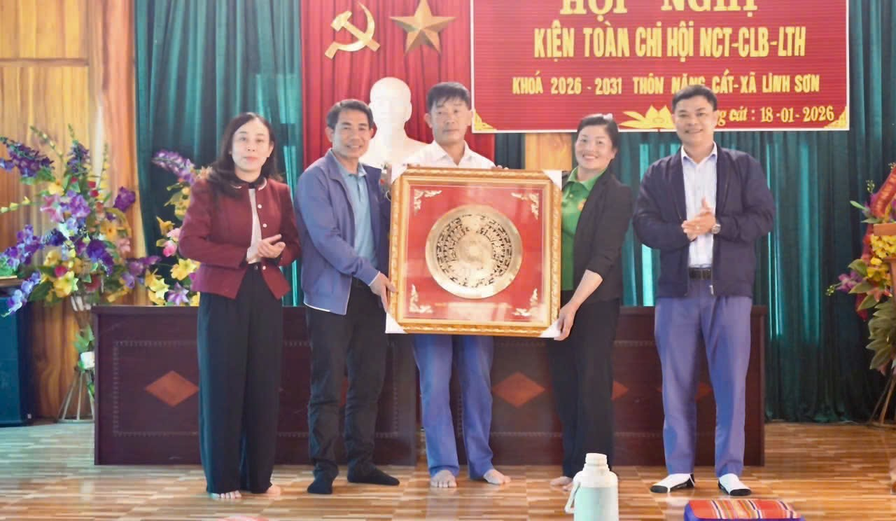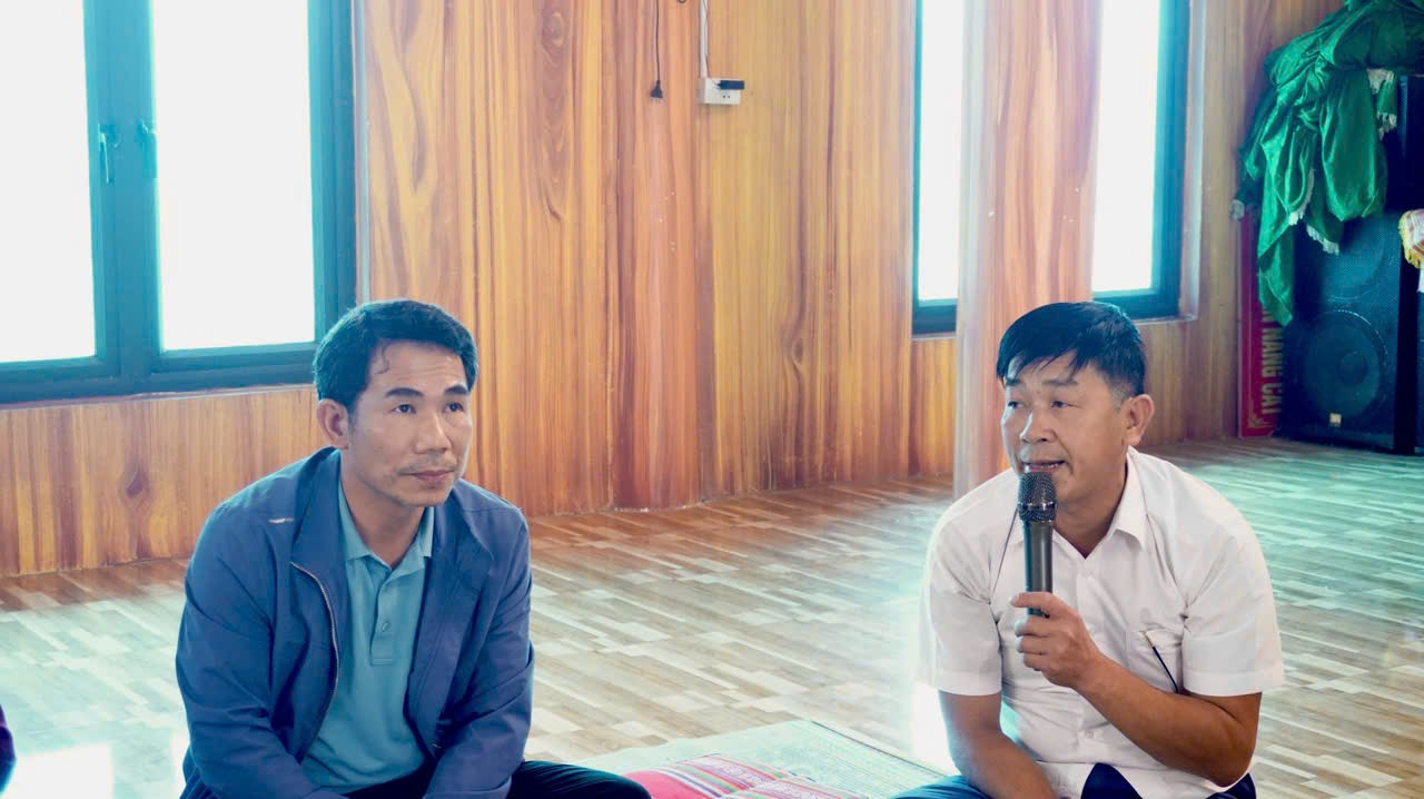 Điểm đến của đoàn là thôn Năng Cát, xã Linh Sơn. Đón tiếp và làm việc với đoàn có đồng chí Lò Văn Duẫn, Trưởng thôn Năng Cát và đồng chí Ngân Thị Khánh, Phó Trưởng thôn.