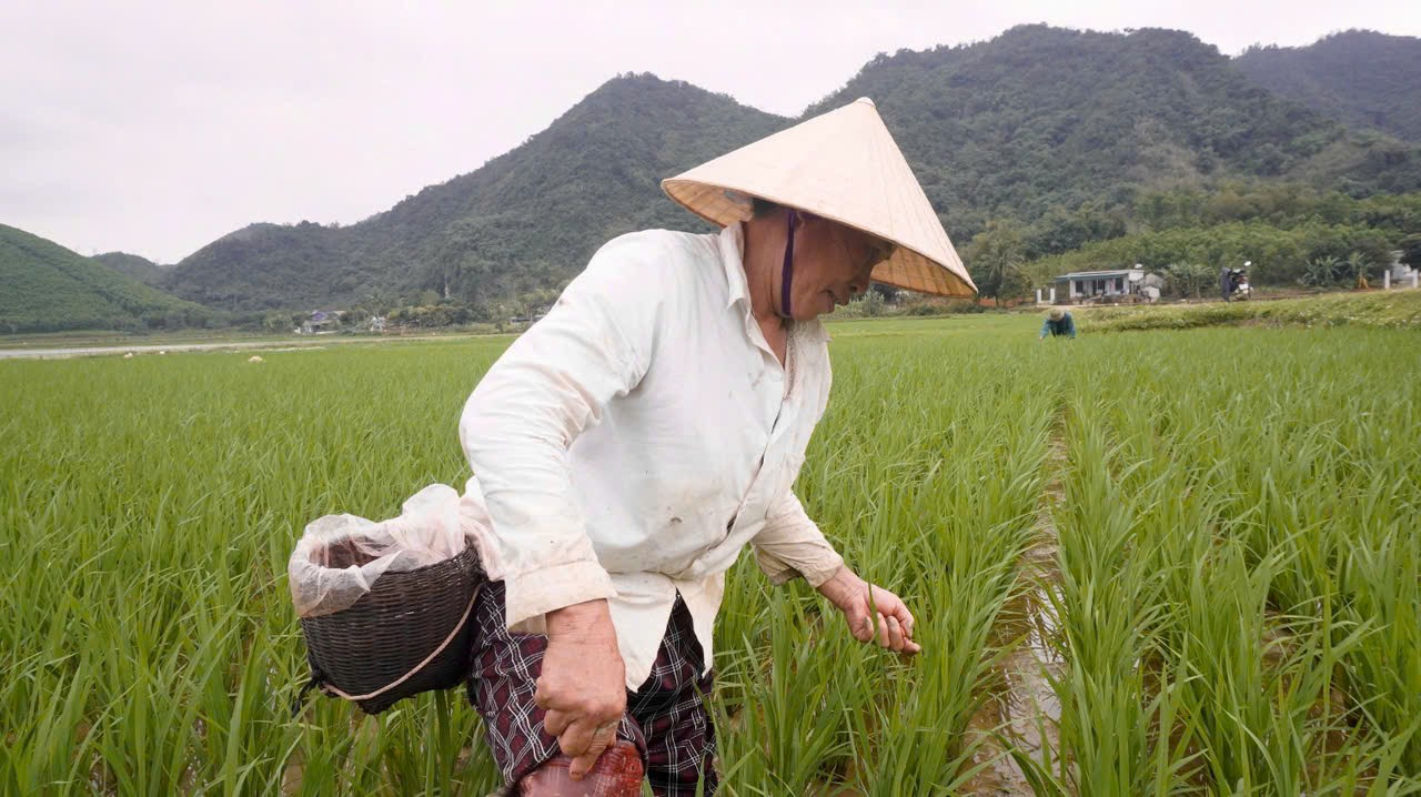 Tranh thủ thời tiết thuận lợi, bà con tập trung bón phân rúi đợt 1 – một trong những khâu kỹ thuật quan trọng giúp cây lúa nhanh bén rễ, hồi xanh, đẻ nhánh khỏe. Phương pháp bón phân sát gốc không chỉ tăng hiệu quả sử dụng phân bón mà còn hạn chế thất thoát dinh dưỡng, giảm chi phí, nâng cao hiệu quả kinh tế. Cùng với đó, công tác làm cỏ được thực hiện đồng loạt, góp phần tạo điều kiện cho lúa phát triển tốt, hạn chế sâu bệnh ngay từ đầu vụ.