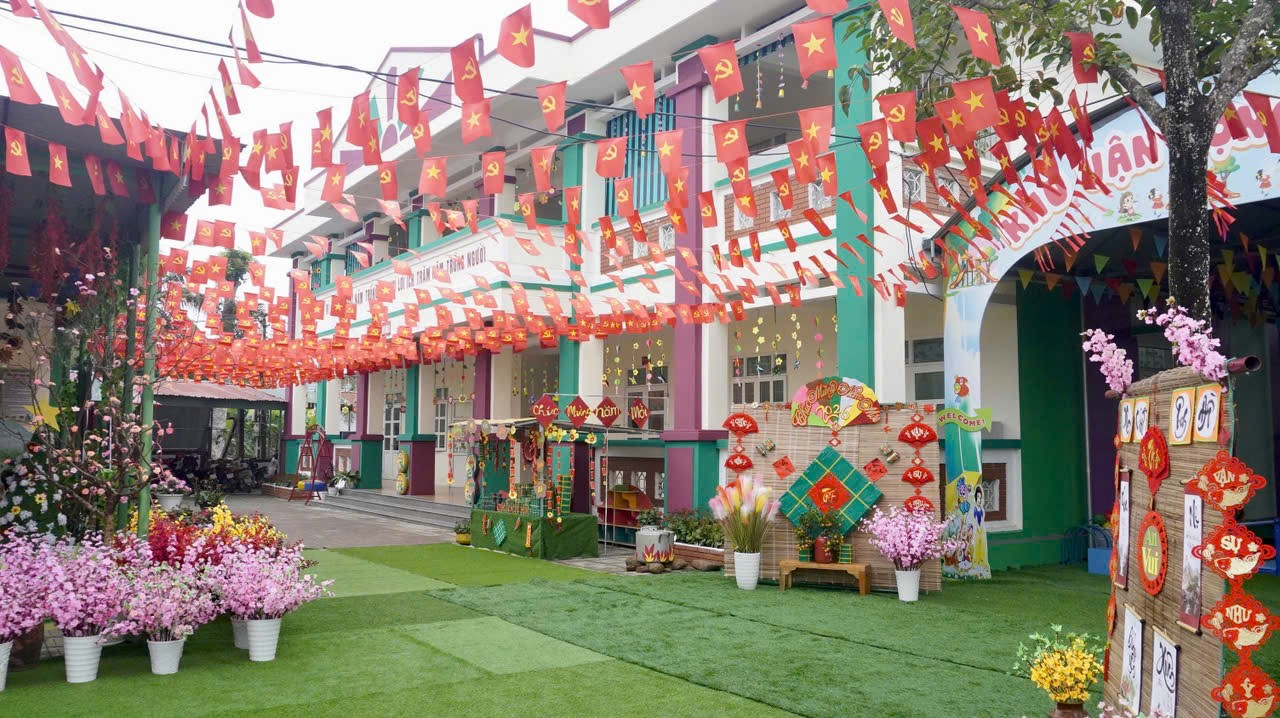 Trong những năm qua, nhà trường luôn nhận được sự quan tâm, đầu tư của các cấp ủy Đảng, chính quyền và sự đồng thuận, ủng hộ của nhân dân địa phương. Cơ sở vật chất của nhà trường ngày càng được quan tâm hoàn thiện với 02 khu trường (khu Thanh Sơn và khu Thung Kế), khuôn viên khang trang, sạch đẹp, thoáng mát; hệ thống cổng, biển tên, tường rào đảm bảo an toàn; các phòng học, phòng chức năng được bố trí khoa học, hợp lý, đáp ứng yêu cầu chăm sóc, nuôi dưỡng và giáo dục trẻ theo chương trình giáo dục mầm non. Sân trường, vườn trường được quy hoạch xanh – sạch – đẹp, thân thiện, phù hợp với đặc điểm tâm sinh lý của trẻ mầm non.
