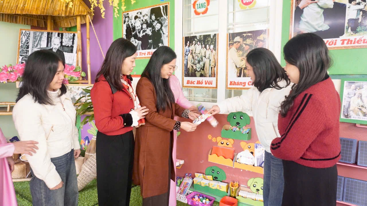 Song song với khảo sát thực tế, Đoàn đánh giá ngoài đã tiến hành kiểm tra, đối chiếu hệ thống hồ sơ, sổ sách, minh chứng của nhà trường theo các tiêu chí quy định. Nội dung kiểm tra tập trung vào kế hoạch nuôi dưỡng, chăm sóc và giáo dục trẻ; hồ sơ tổ chức các hoạt động giáo dục theo chủ đề; các hoạt động trải nghiệm, giáo dục kỹ năng sống, giáo dục truyền thống cho trẻ thông qua các ngày lễ lớn của đất nước, của tỉnh và của địa phương; hồ sơ công tác quản lý, chỉ đạo, kiểm tra nội bộ; việc thực hiện quy chế dân chủ trong nhà trường.