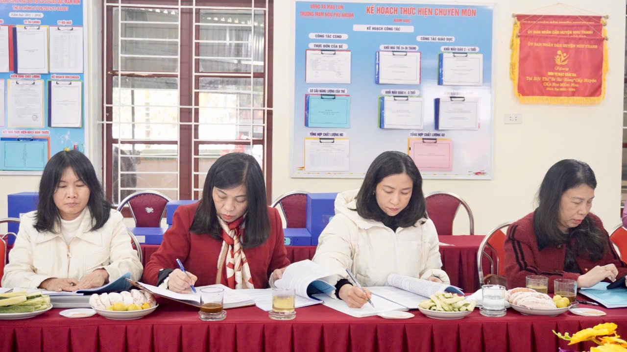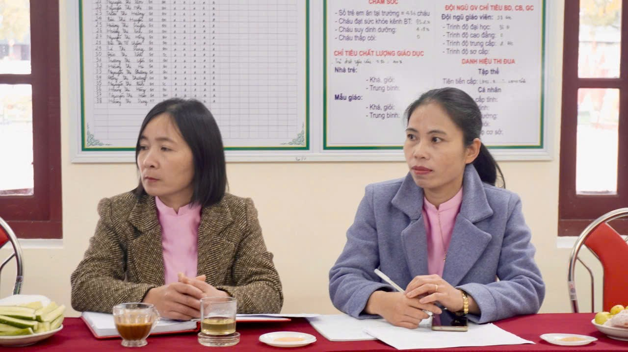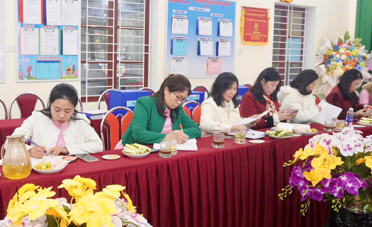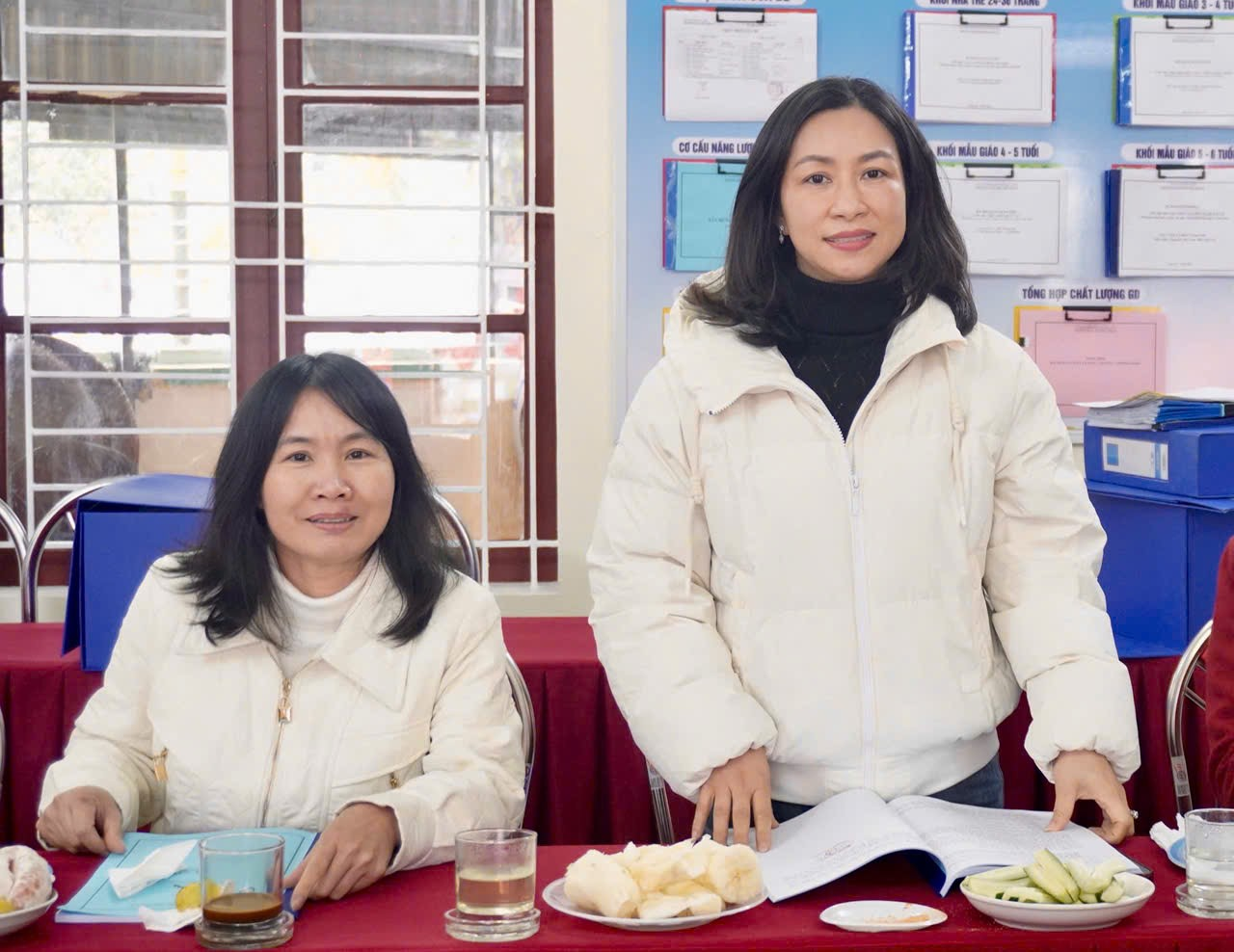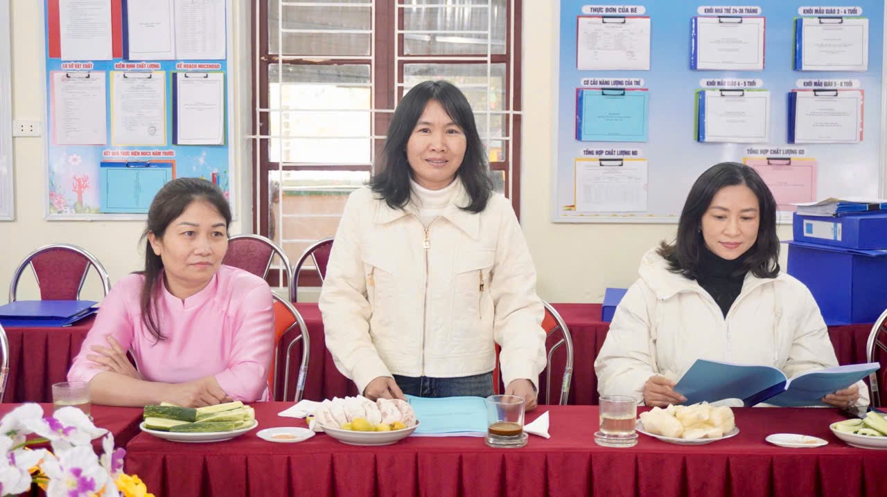 Sau quá trình khảo sát và kiểm tra, Đoàn đánh giá ngoài đã tổ chức phiên thảo luận, phân tích sâu từng tiêu chí trường mầm non đạt chuẩn quốc gia mức độ 1. Đoàn đã làm rõ những điểm mạnh nổi bật của nhà trường, đồng thời chỉ ra những nội dung còn tồn tại, hạn chế, phân tích nguyên nhân và đề xuất các giải pháp cụ thể, phù hợp với điều kiện thực tiễn của địa phương và nhà trường. Các ý kiến trao đổi, thảo luận được thực hiện trên tinh thần khách quan, xây dựng, nhằm hỗ trợ nhà trường tiếp tục hoàn thiện hồ sơ, minh chứng, từng bước nâng cao chất lượng giáo dục mầm non.