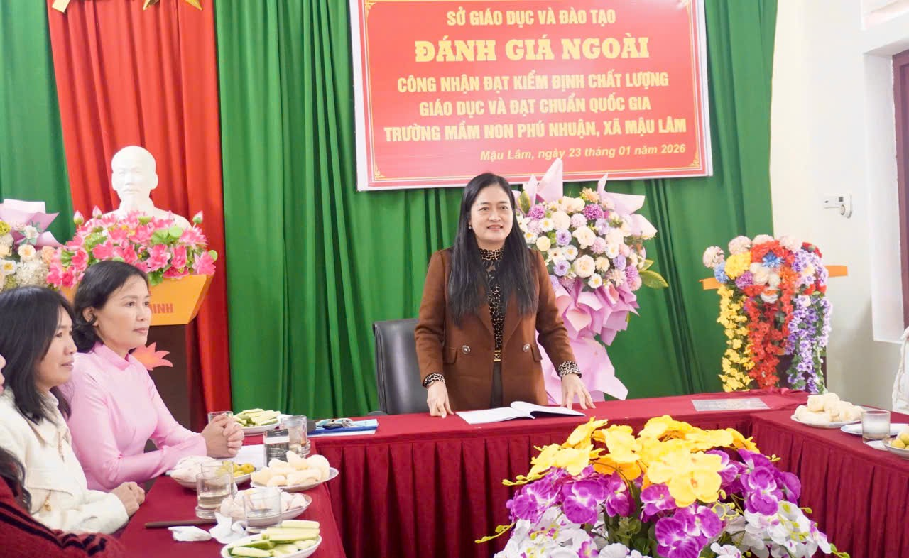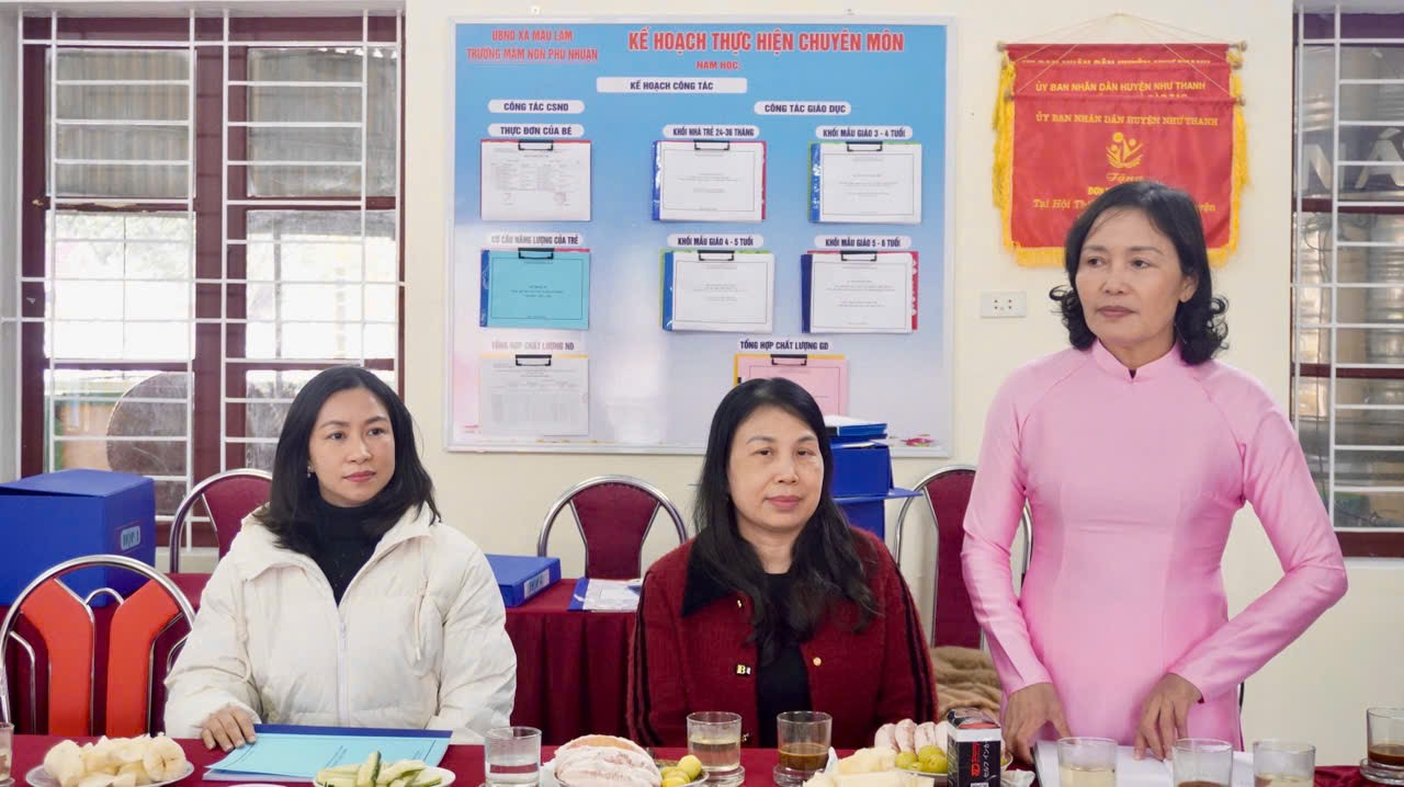 Phát biểu tại buổi làm việc, đồng chí Trịnh Minh Lâm – Phó Chủ tịch UBND xã Mậu Lâm trân trọng cảm ơn Đoàn đánh giá ngoài của Sở Giáo dục và Đào tạo Thanh Hóa đã quan tâm, hướng dẫn cụ thể, trách nhiệm đối với Trường Mầm non Phú Nhuận. Đồng chí khẳng định, cấp ủy, chính quyền địa phương luôn xác định giáo dục, đặc biệt là giáo dục mầm non, là nhiệm vụ quan trọng, có ý nghĩa lâu dài; đồng thời cam kết sẽ tiếp tục quan tâm, tạo điều kiện thuận lợi về mọi mặt để nhà trường hoàn thiện các tiêu chí, nâng cao chất lượng chăm sóc, nuôi dưỡng và giáo dục trẻ, đáp ứng yêu cầu đổi mới giáo dục mầm non trong giai đoạn hiện nay.