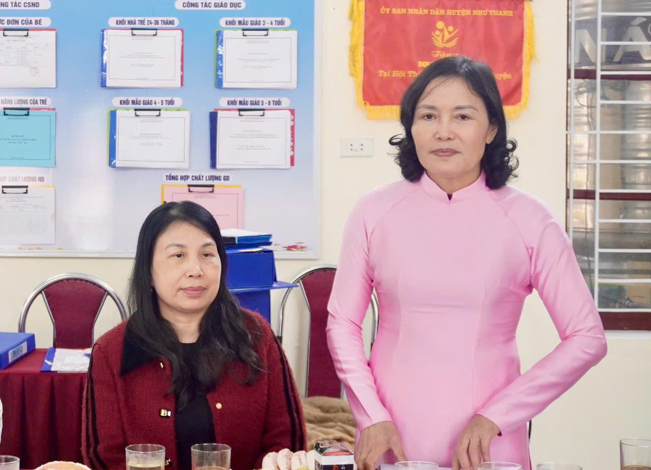 Đồng chí Trương Thị Hạnh – Trưởng phòng Giáo dục Mầm non, Sở GD&ĐT Thanh Hóa phát biểu kết luận buổi làm việc tại Trường Mầm non Phú Nhuận, xã Mậu Lâm.
