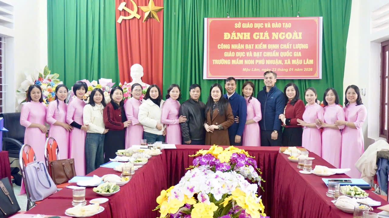 Sáng ngày 23/01/2025, Trường Mầm non Phú Nhuận, xã Mậu Lâm, tỉnh Thanh Hóa đã vinh dự đón Đoàn đánh giá ngoài của Sở Giáo dục và Đào tạo Thanh Hóa đến khảo sát công tác kiểm định chất lượng giáo dục và công nhận trường đạt chuẩn quốc gia.