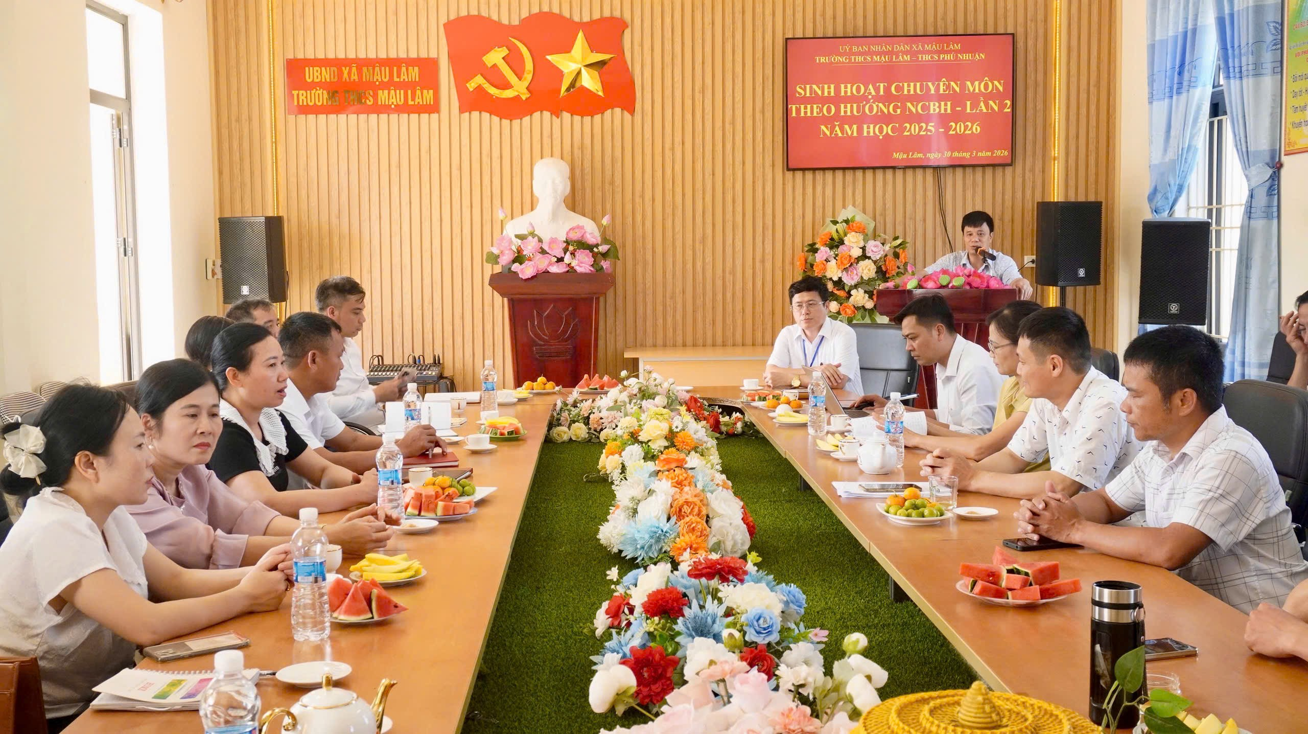 Chiều ngày 30/3/2026, Trường THCS Mậu Lâm phối hợp với Trường THCS Phú Nhuận tổ chức sinh hoạt chuyên môn theo hướng nghiên cứu bài học (NCBH) lần 2, năm học 2025–2026. Đây là hoạt động chuyên môn thiết thực nhằm góp phần đổi mới phương pháp dạy học, nâng cao chất lượng giáo dục trong nhà trường.