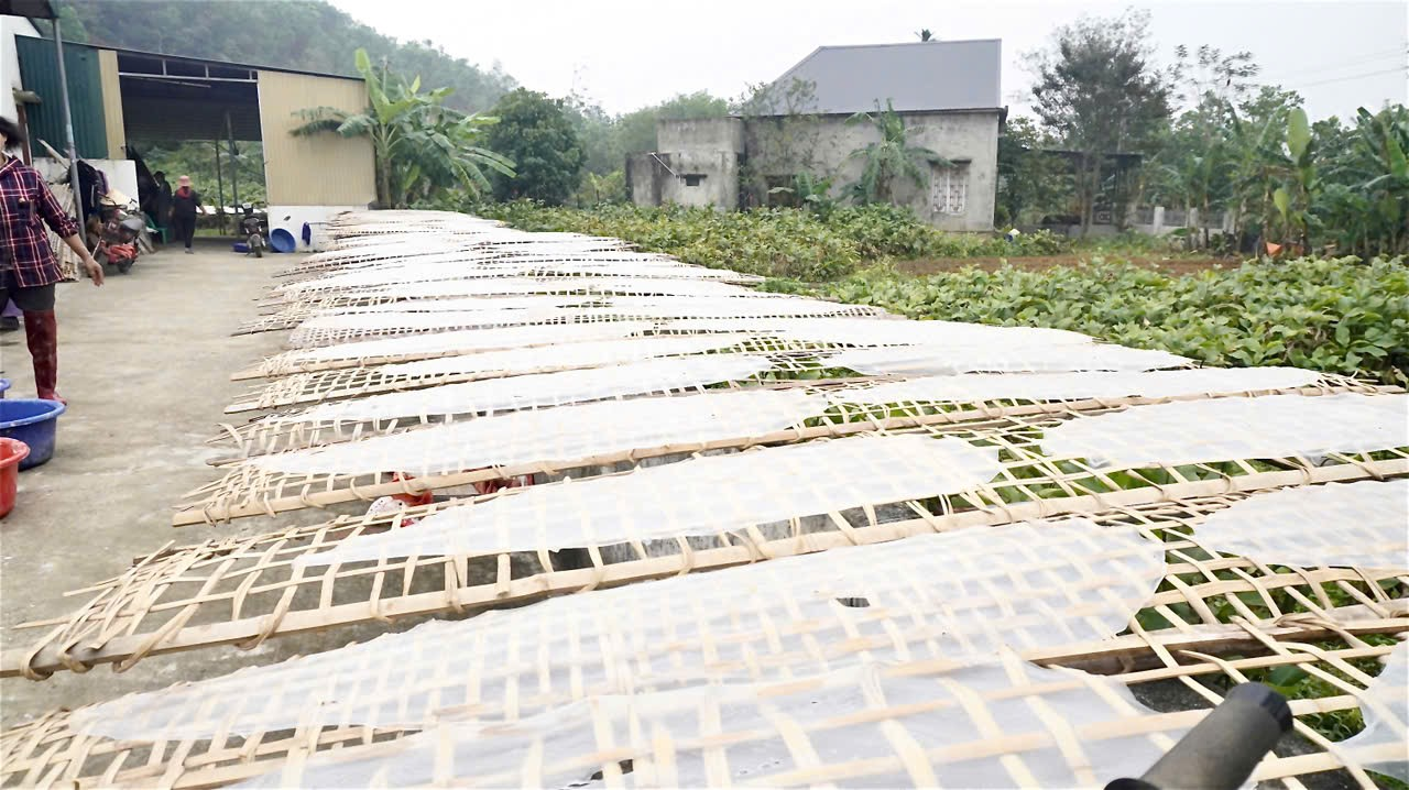 Cơ sở sản xuất miến dong truyền thống của gia đình anh Nguyễn Văn Tiến, chị Nguyễn Thị Hương tại thôn Phú Phượng 4 xã Mậu Lâm.