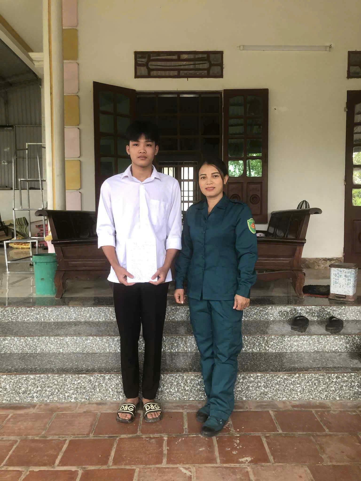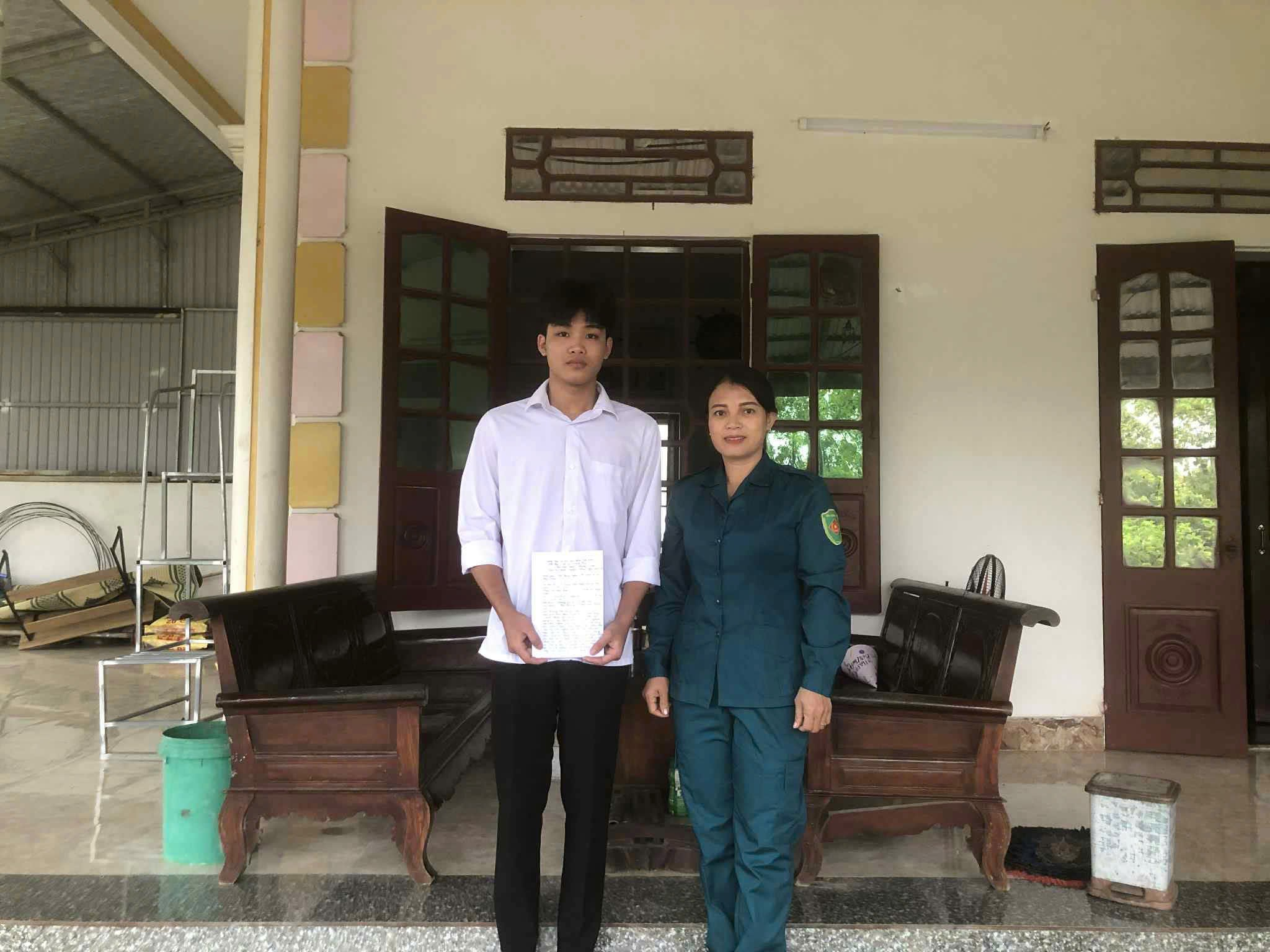 Đồng chí: Đào Thị Vân - Trưởng thôn Phú Phượng 4 cùng thanh niên Tô Xuân Hiếu. Tiêu biểu trong phong trào viết đơn tình nguyện nhập ngũ năm 2026