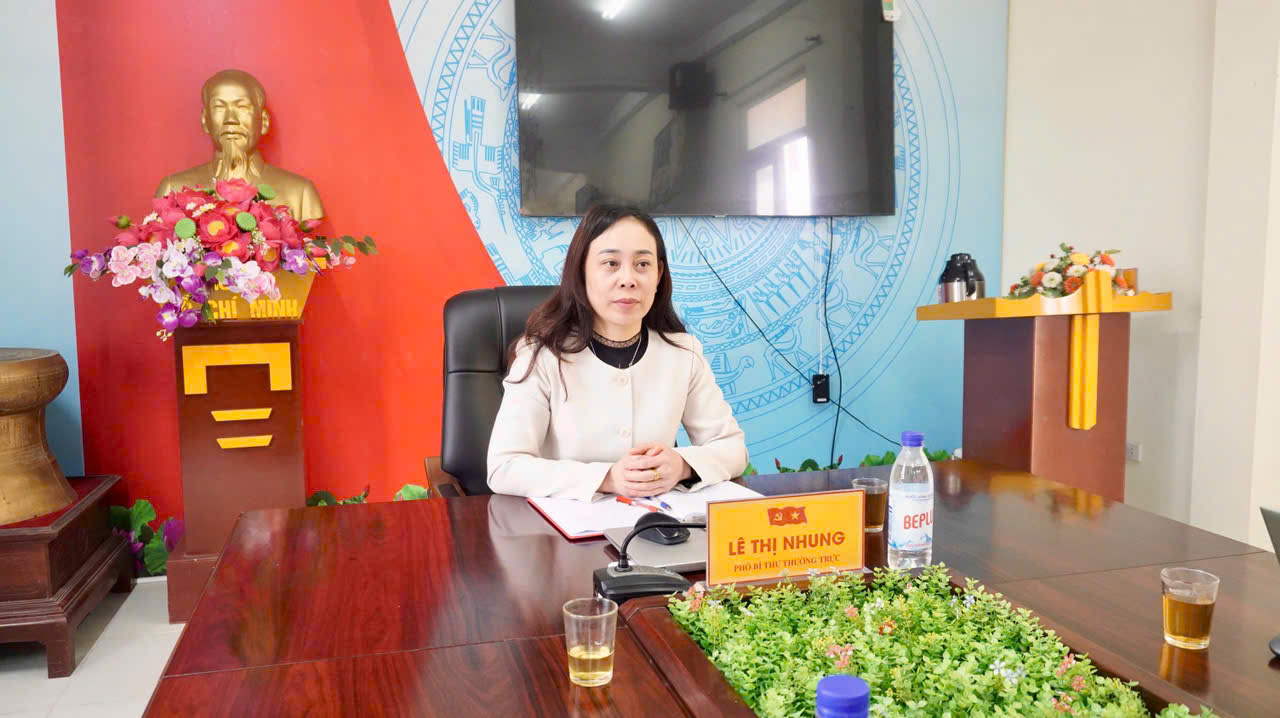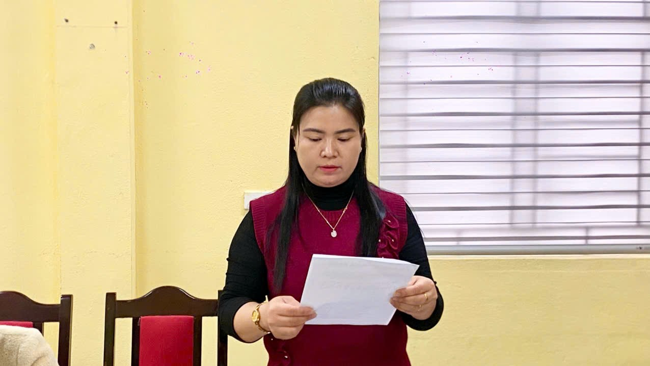 Đồng chí Lê Thị Nhung - Phó Bí thư Thường trực Đảng ủy xã tham dự hội nghị.