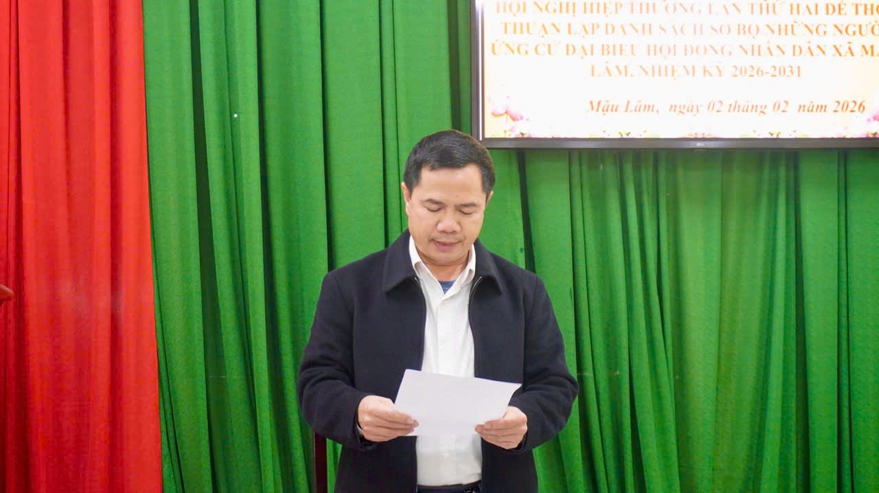 XÃ MẬU LÂM TỔ CHỨC HỘI NGHỊ HIỆP THƯƠNG LẦN THỨ HAI LẬP DANH SÁCH SƠ BỘ NGƯỜI ỨNG CỬ ĐẠI BIỂU HỘI ĐỒNG NHÂN DÂN XÃ NHIỆM KỲ 2026 – 2031.