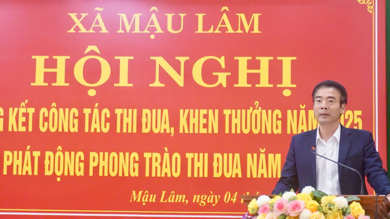 Sáng ngày 04/3/2026, Ủy ban nhân dân xã Mậu Lâm long trọng tổ chức Hội nghị tổng kết công tác thi đua, khen thưởng năm 2025 và phát động phong trào thi đua năm 2026. Hội nghị diễn ra trong không khí trang trọng, phấn khởi, thể hiện quyết tâm chính trị cao của Đảng bộ, chính quyền và Nhân dân toàn xã bước vào năm mới với khí thế thi đua sôi nổi, đoàn kết, sáng tạo và trách nhiệm.