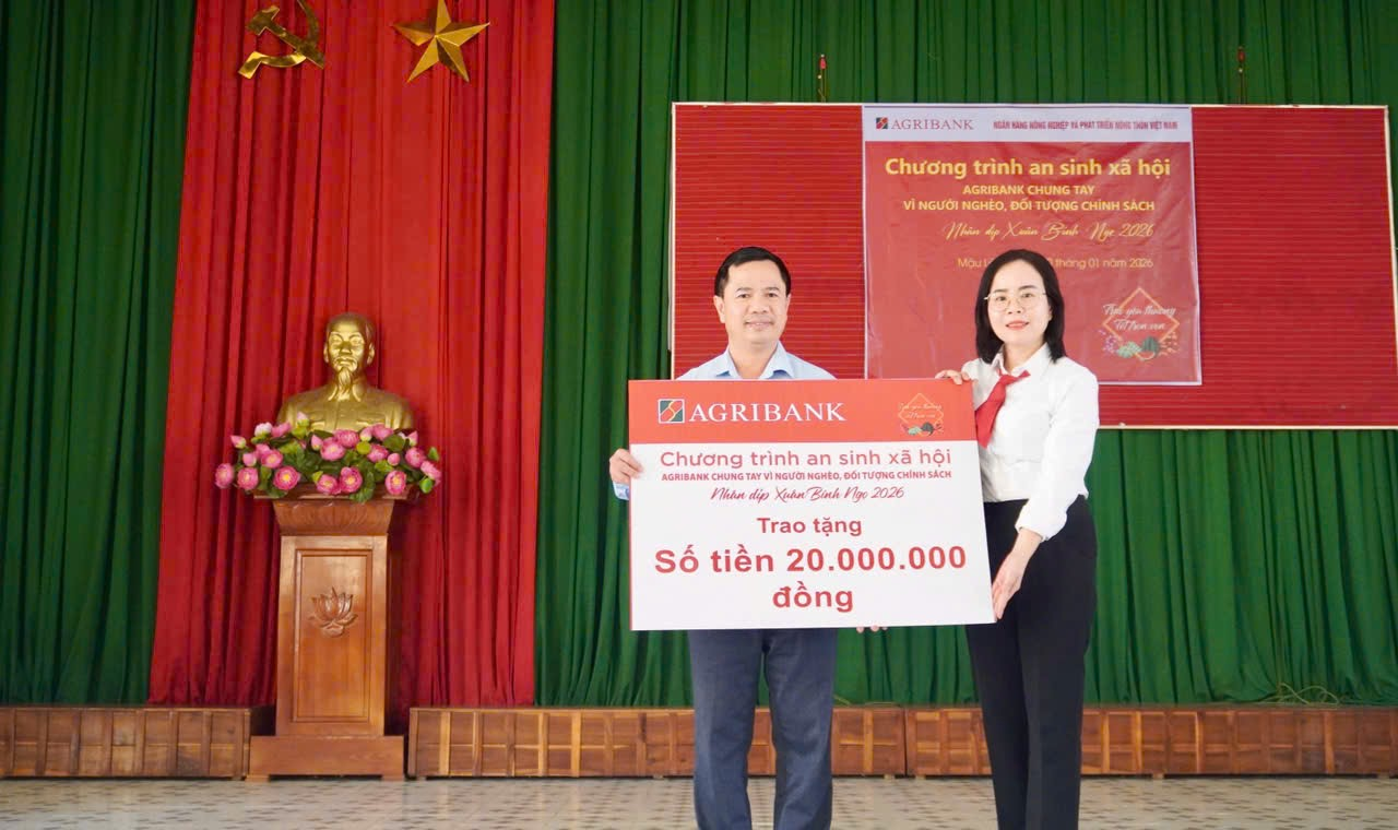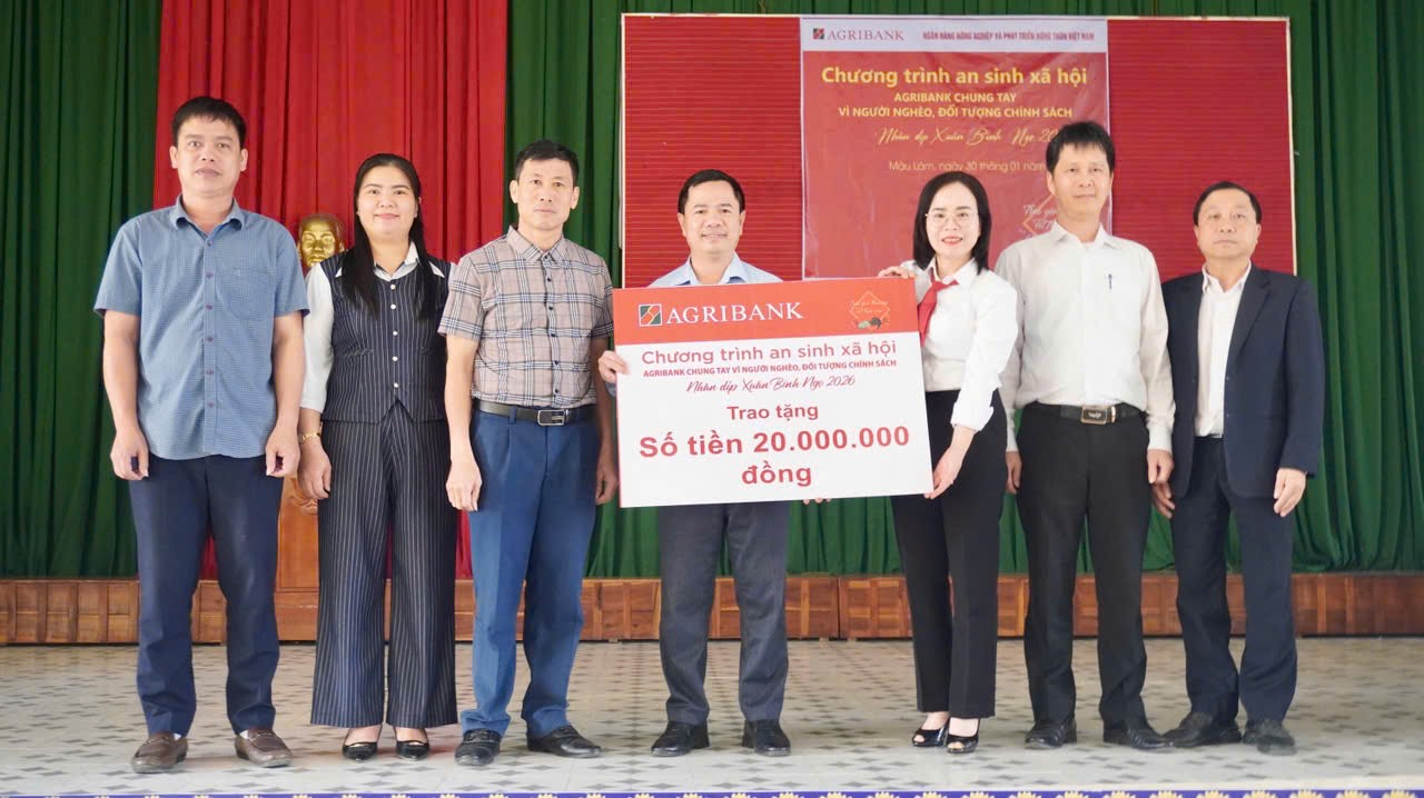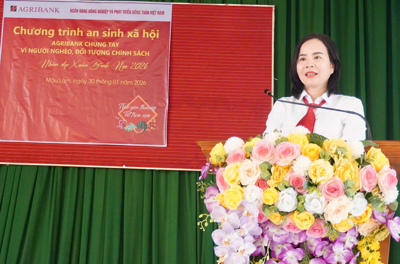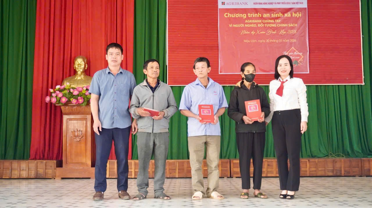 Chiều ngày 30 tháng 01 năm 2026, tại Trung tâm Văn hóa Thể thao xã Mậu Lâm, tỉnh Thanh Hóa, Ngân hàng Nông nghiệp và Phát triển nông thôn Việt Nam – Agribank chi nhánh Như Thanh Nam Thanh Hóa đã phối hợp với Ủy ban Mặt trận Tổ quốc Việt Nam xã Mậu Lâm long trọng tổ chức Chương trình trao quà an sinh xã hội với chủ đề “Agribank chung tay vì người nghèo, đối tượng chính sách” nhân dịp Tết Nguyên đán Bính Ngọ 2026.