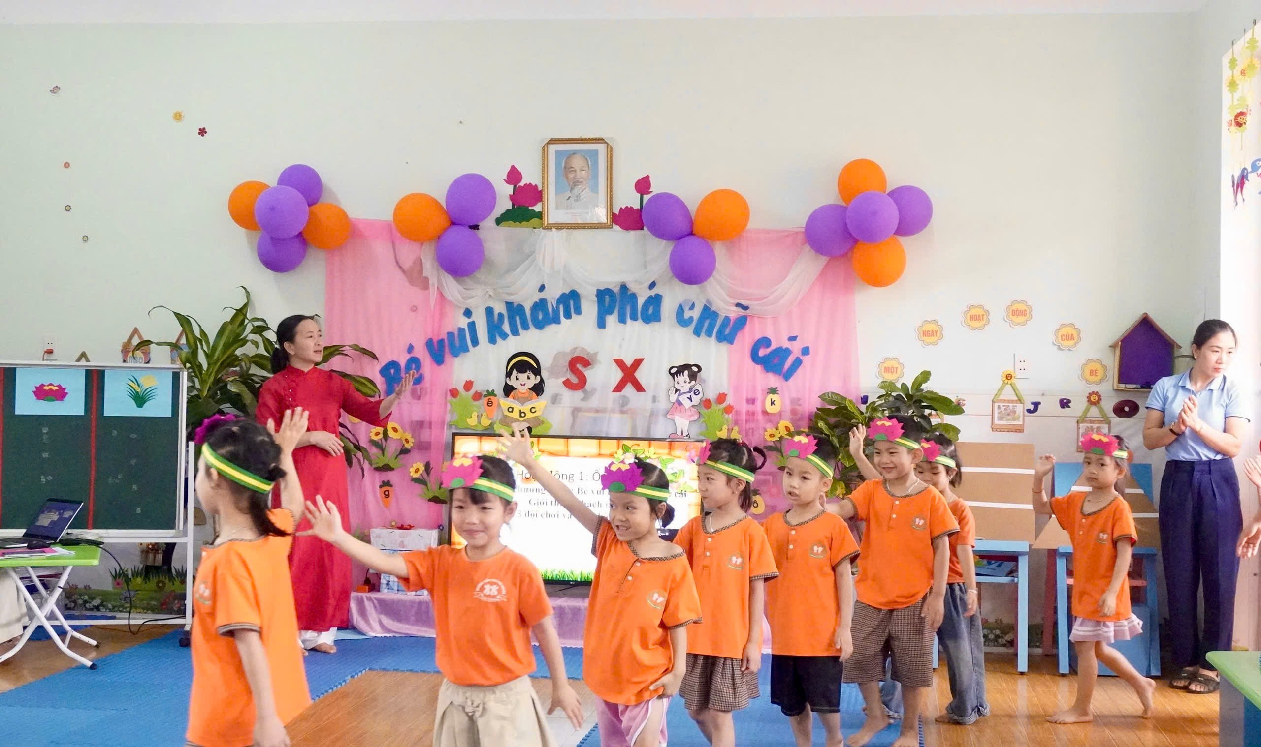 Trong khuôn khổ hội nghị, các đại biểu đã dự giờ 2 hoạt động học minh họa gồm: hoạt động làm quen văn học với truyện “Chiếc ô của Thỏ Trắng” (nhóm trẻ 24–36 tháng tuổi) và hoạt động làm quen chữ cái S, X (lớp mẫu giáo 5–6 tuổi). Các tiết dạy được chuẩn bị chu đáo, bám sát chương trình giáo dục mầm non, phát huy tính tích cực, chủ động của trẻ.