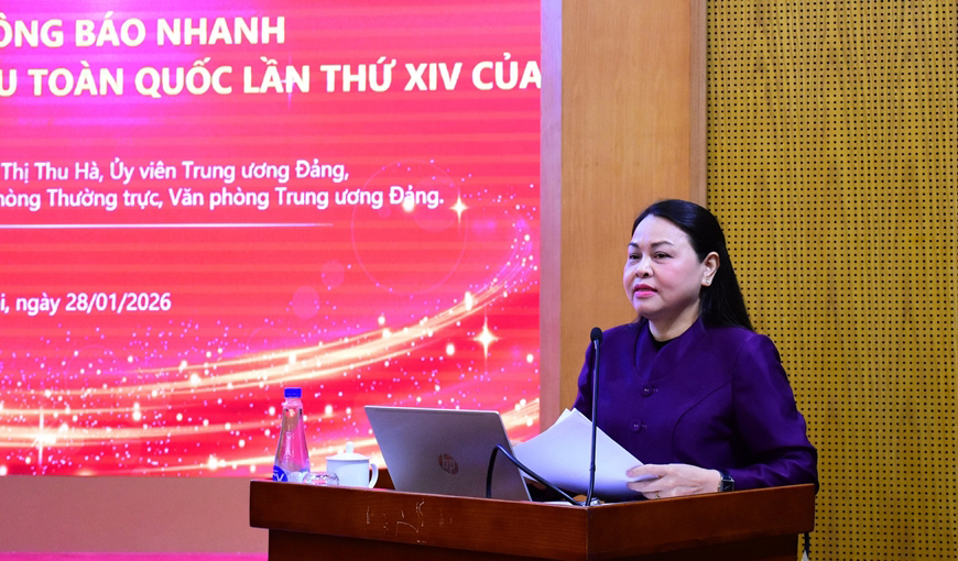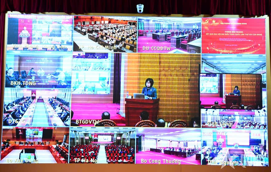 Tại hội nghị, đồng chí Nguyễn Thị Thu Hà – Ủy viên Ban Chấp hành Trung ương Đảng, Phó Chánh Văn phòng Thường trực Văn phòng Trung ương Đảng đã thông báo nhanh kết quả Đại hội đại biểu toàn quốc lần thứ XIV của Đảng. Theo đó, Đại hội XIV diễn ra từ ngày 19 đến ngày 23/01/2026 tại Thủ đô Hà Nội. Sau thời gian làm việc nghiêm túc, trách nhiệm, khoa học, phát huy cao độ trí tuệ tập thể, dân chủ và đổi mới, Đại hội đã thành công tốt đẹp trên mọi phương diện.