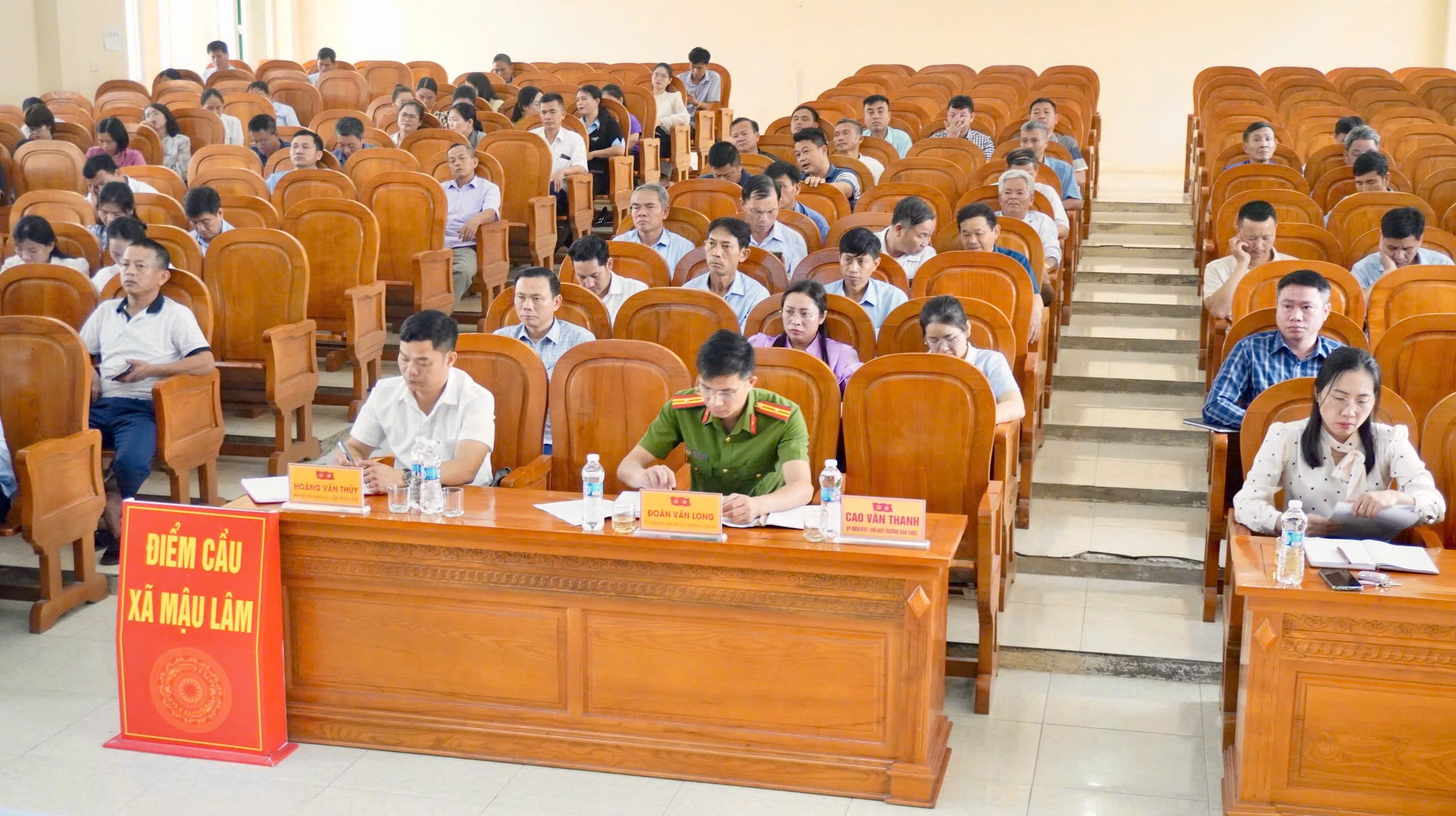 tại điểm cầu xã mậu lâm, hội nghị được tổ chức nghiêm túc, đúng thành phần, bảo đảm chất lượng. đồng chí lê văn cường – bí thư đảng ủy, chủ tịch HĐND xã chủ trì hội nghị. tham dự có các đồng chí thường trực đảng ủy, ủy viên ban thường vụ, ủy viên ban chấp hành đảng bộ xã; ủy viên ủy ban kiểm tra đảng ủy; cán bộ, đảng viên các cơ quan đảng, chính quyền, mặt trận tổ quốc và các đoàn thể; bí thư chi bộ, trưởng thôn; lãnh đạo các trường học, trạm y tế trên địa bàn.